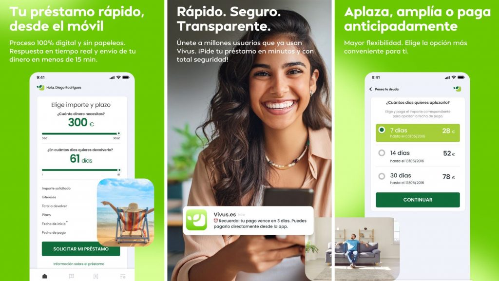 - Primer préstamo de 300€: Vivus ofrece un préstamo de hasta 300€ para nuevos clientes. Las condiciones son claras y están detalladas en su sitio web.
